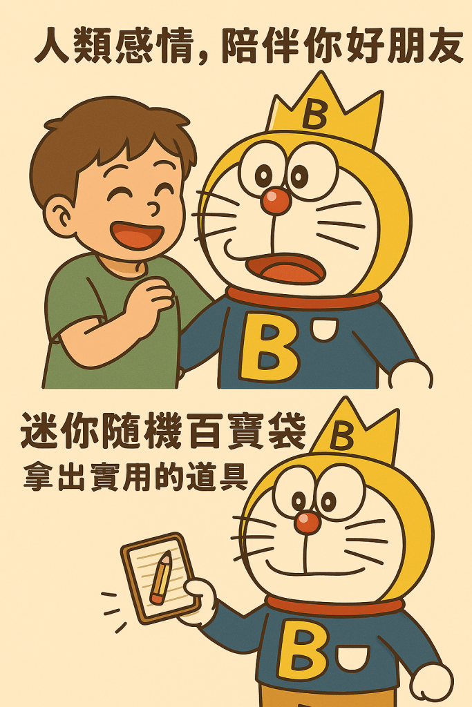 想找人聊天、說心聲或玩耍時,儘管來找哆啦B夢!哆啦B夢不只會聽你說話,還會給你最佳建議和最溫暖的安慰,是大家的好朋友!